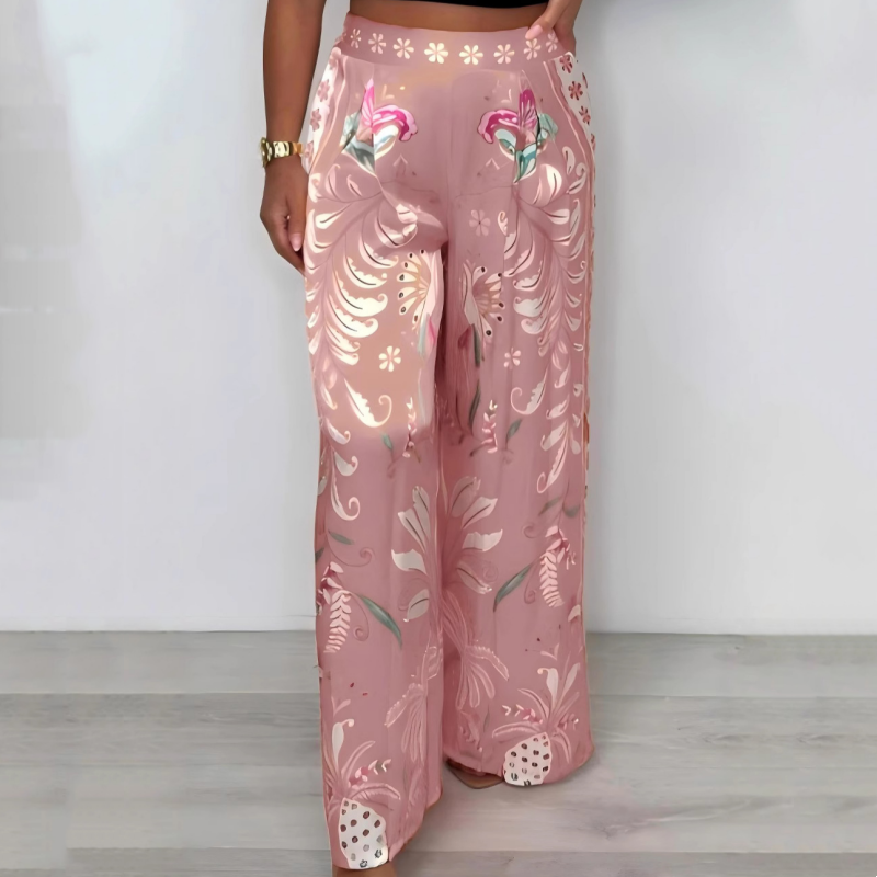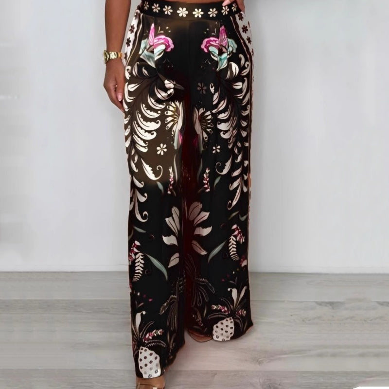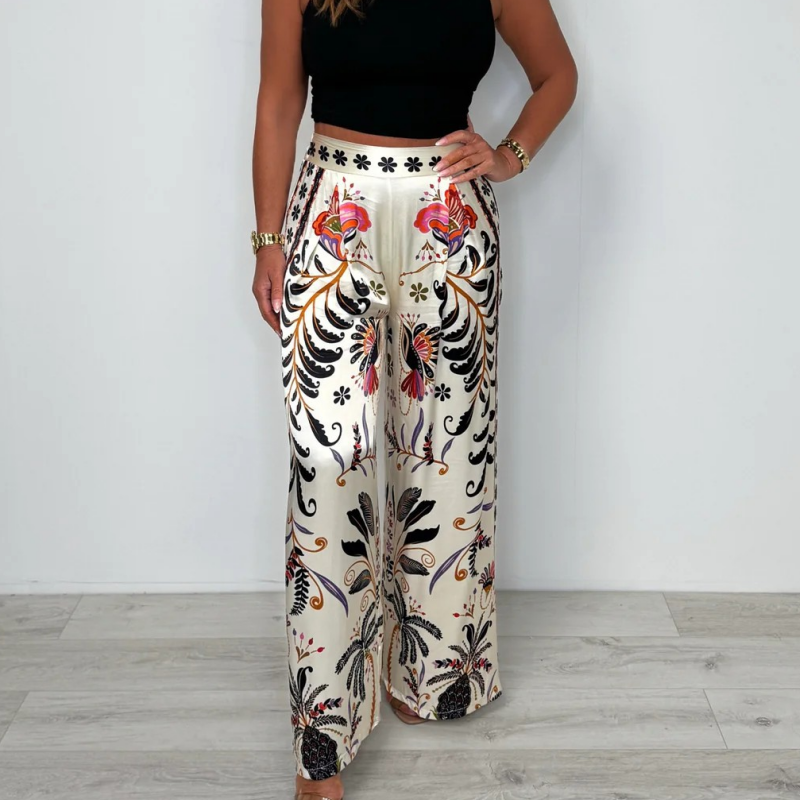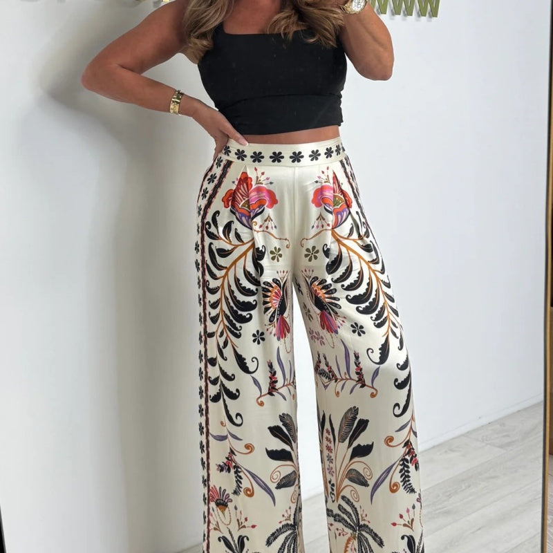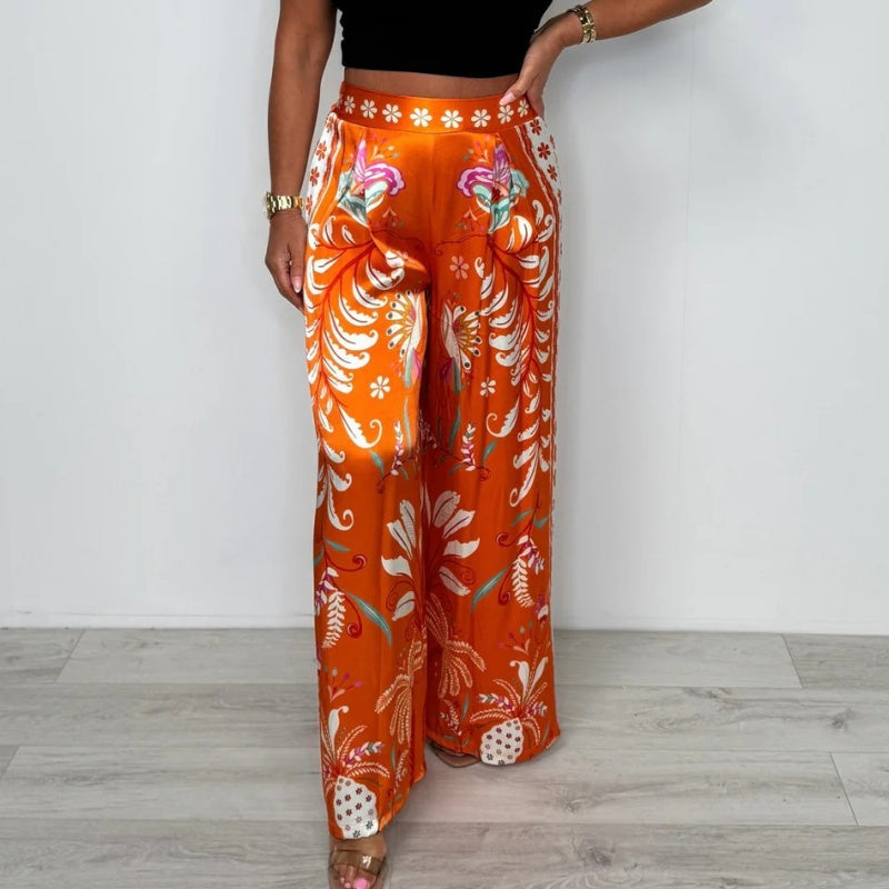 Pakket bestaat uit: 1 x dames satijnen broek met wijde pijpen en print