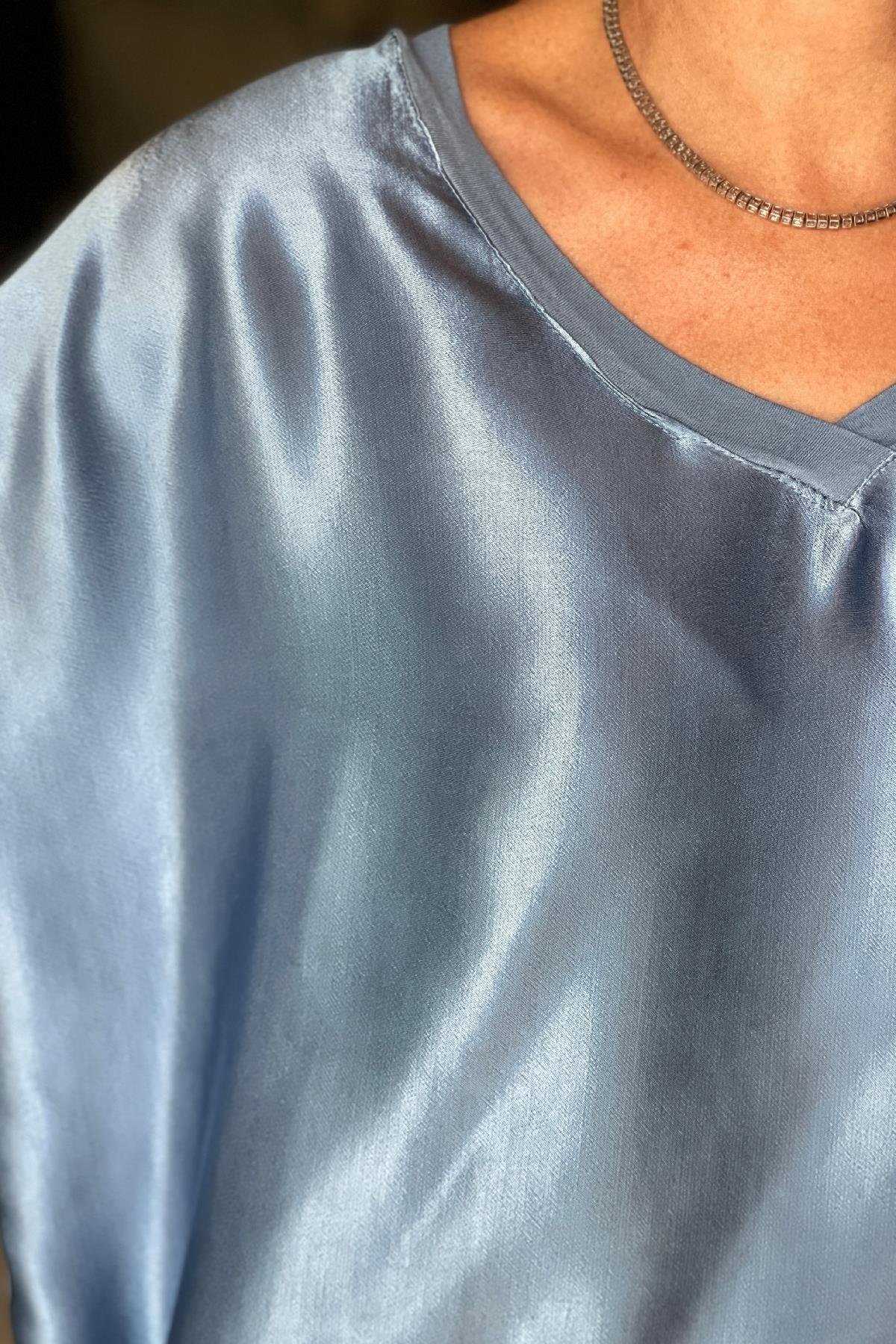 Elena is de ultieme keuze voor speciale gelegenheden of een chique avond uit. De V-hals top voegt een sensueel element toe aan de outfit, terwijl de satijnen afwerking zorgt voor een luxueus gevoel. Samen met de bijpassende broek vormt dit pak een harmonieus geheel dat uw figuur op elegante wijze accentueert. De zachte abrikooskleur versterkt de vrouwelijke charme en voegt een warme, uitnodigende gloed toe aan uw look.
