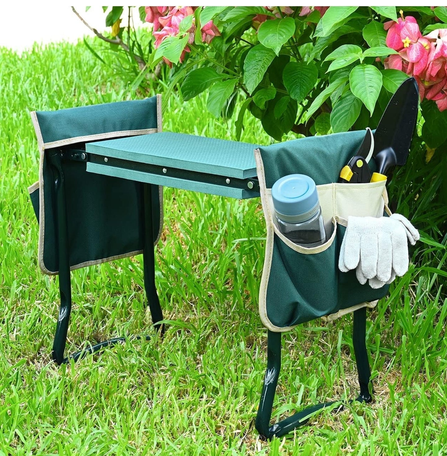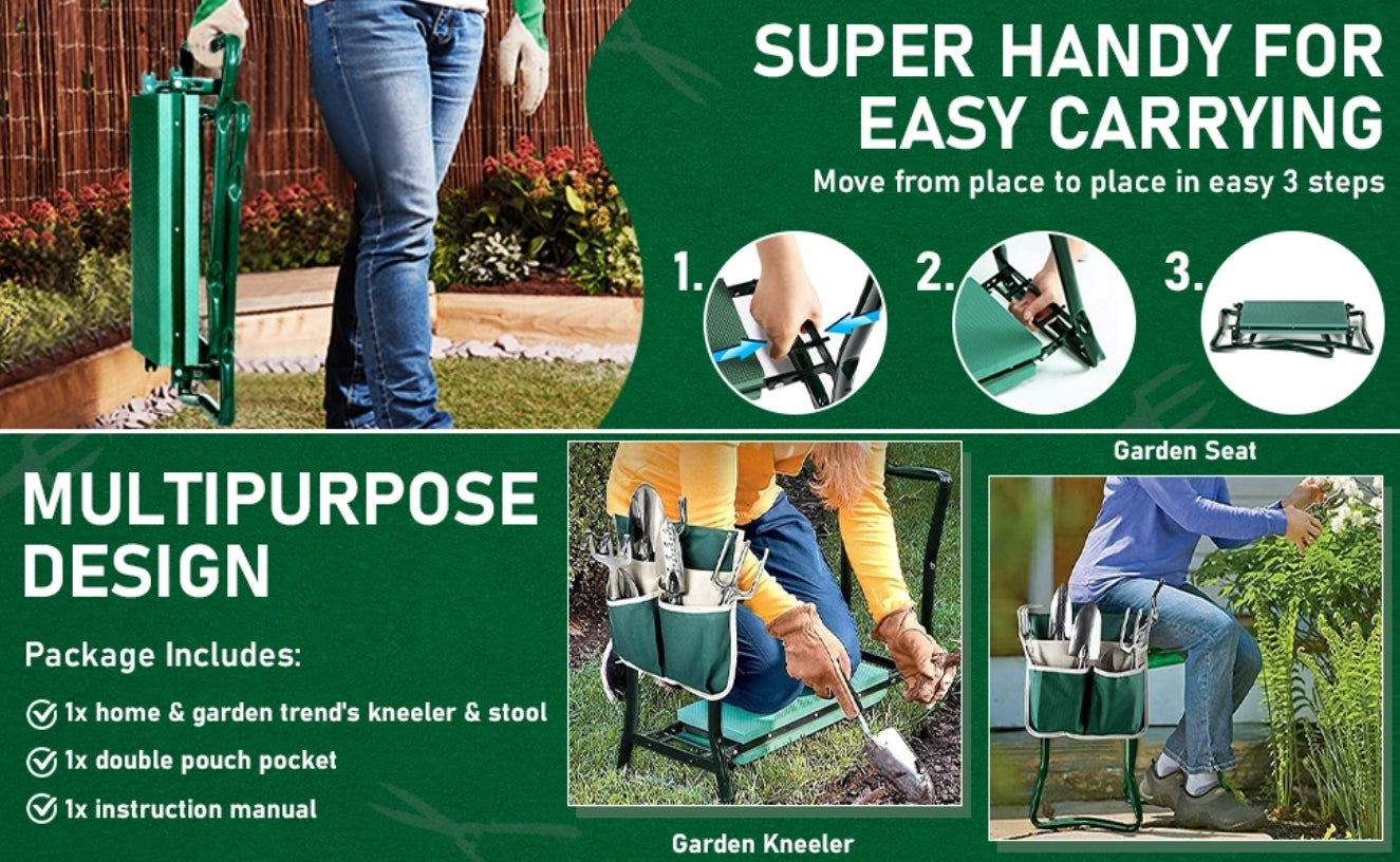 Multifunctioneel tuingereedschap - De tuinstoel en knieler zijn voorzien van een zachte en brede bekleding. De lichte verhoging neemt echt de druk van je onderbenen en beschermt ze en houdt je knieën weg van de modderige grond en het gras.De stevige armen helpen haar om met gemak naar een staande positie te gaan.De knieler kan worden omgedraaid om hem om te zetten in een comfortabele stoel die je kan helpen even te zitten en te ontspannen als je moe bent van het tuinieren.