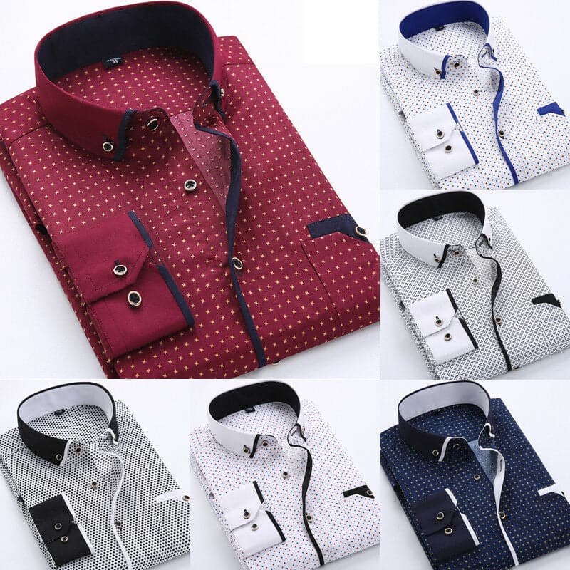 De details van onze overhemden zijn in elk aspect zichtbaar. De aandacht voor detail is duidelijk, van de contrasterende kraag- en manchetontwerpen tot de subtiele maar opvallende patronen die elk overhemd sieren. Kies uit verschillende opties: gedurfd bordeauxrood met subtiele sterpatronen, klassiek wit met verfijnde stippen of stijlvol marineblauw met delicate stipjes.